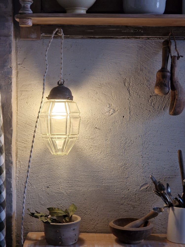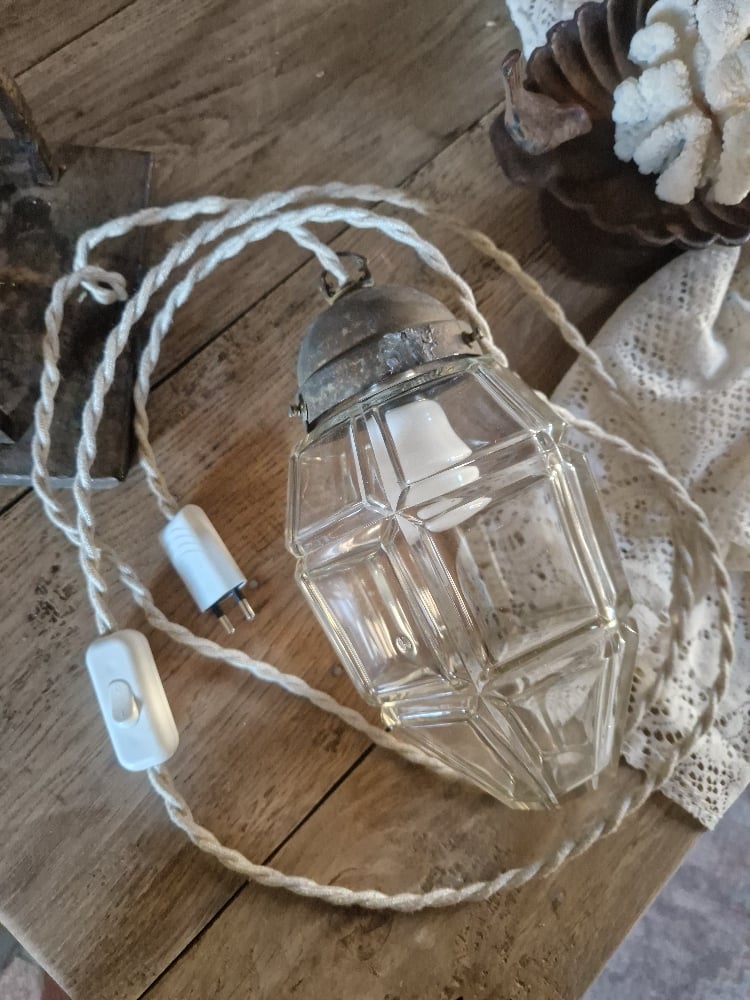 Revisité en baladeuse pour un usage plus pratique, le circuit électrique est neuf sauf la douille B22 (baillonnette) qui est d'origine