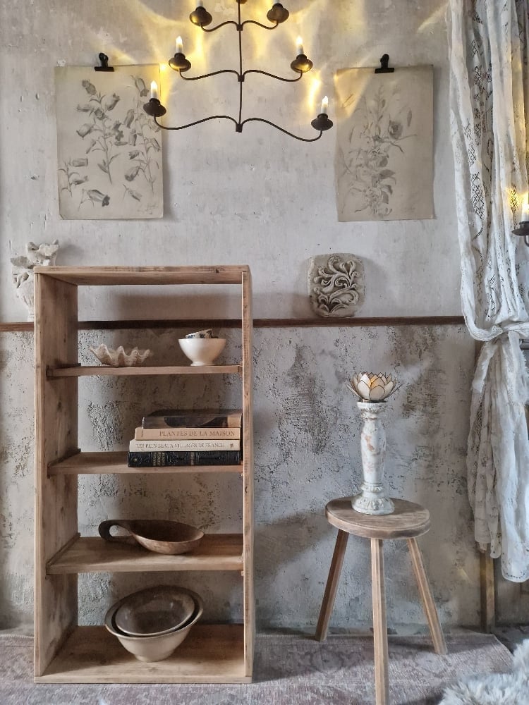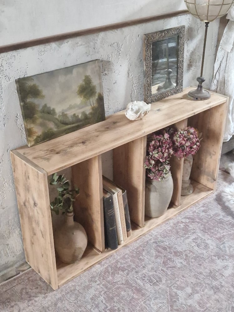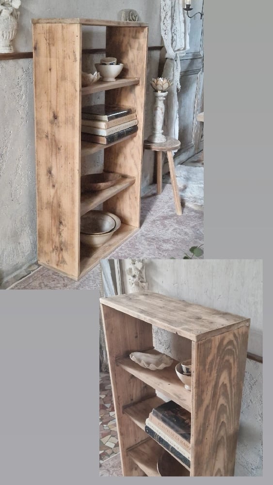Charmante petite étagère bibliothèque ancienne en pin massif dans sa douce patine.