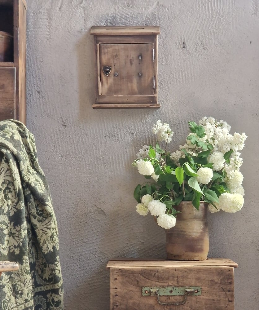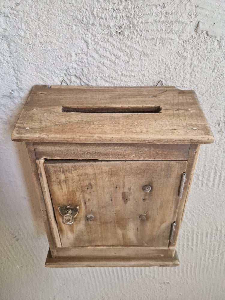 Ancienne petite boîte aux lettres en bois dans son jus.