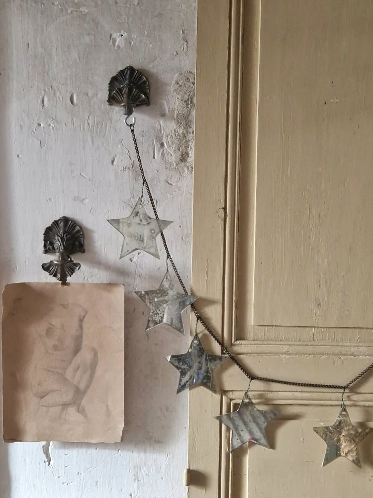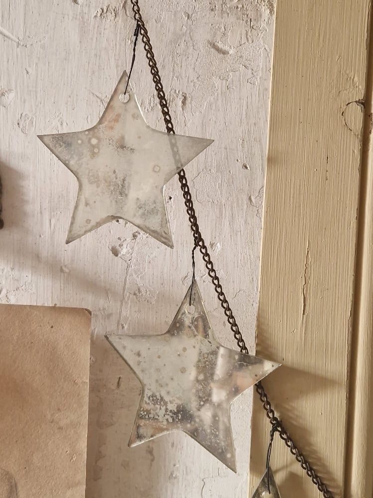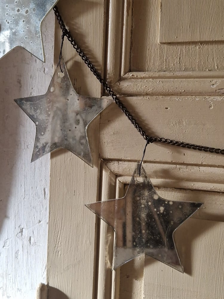 Jolie guirlande d'étoiles en verre miroir très patinées au sublime effet usé.