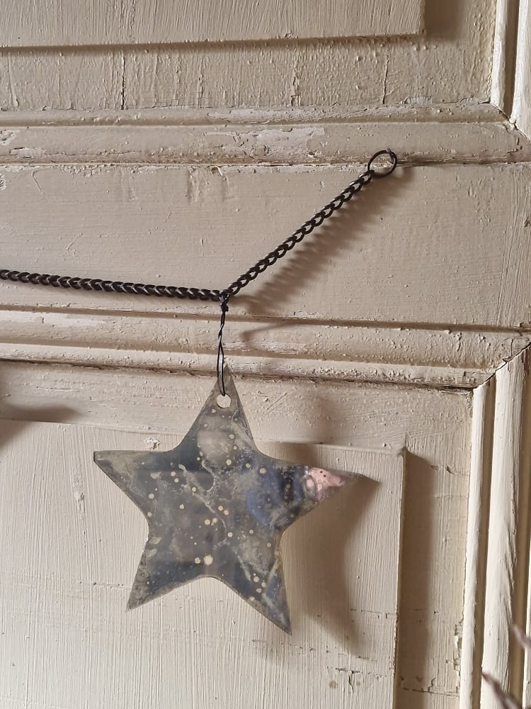 C'est une création unique, elles sont montées sur une chainette ancienne en métal noirci par le temps, les étoiles sont toutes différentes