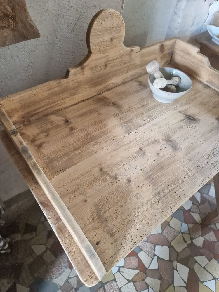 A noter : marques du temps sur le plateau (anciens trous de vrillettes)