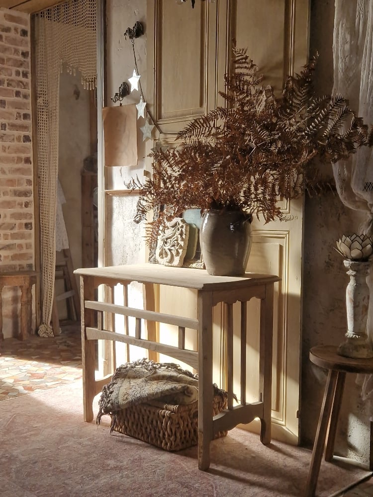 Très jolie petite desserte ancienne en chêne massif clair brut