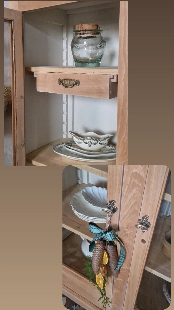 Ses tiroirs aux belles poignées en laiton ajoutent grandement à son charme, les vitres biseautées témoignent d'un cachet noble pour l'époque.