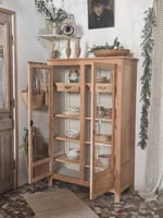 Magnifique vitrine ancienne en chêne aux vitres biseautées d'origine au format généreux sans être encombrant