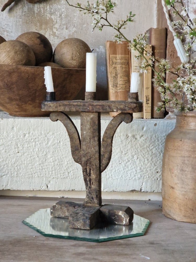Magnifique bougeoir rustique à la sublime patine et au vécu prononcé pour un effet unique !