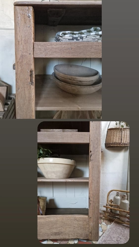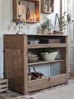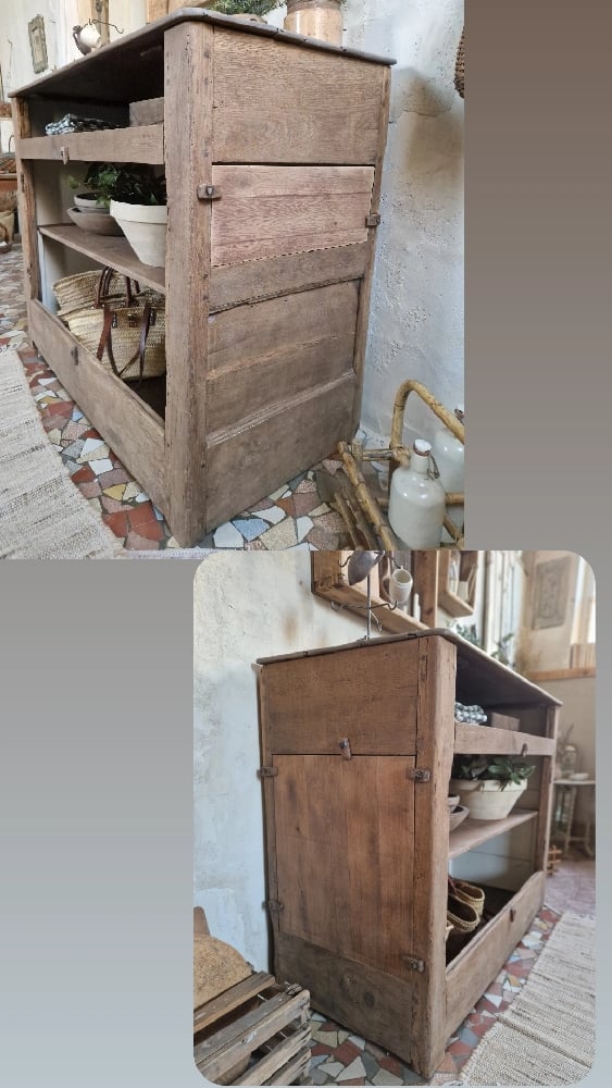 Ancien blutoir du XIXème tout en châtaignier massif revisité pour en faire un buffet ouvert fonctionnel aujourd'hui.