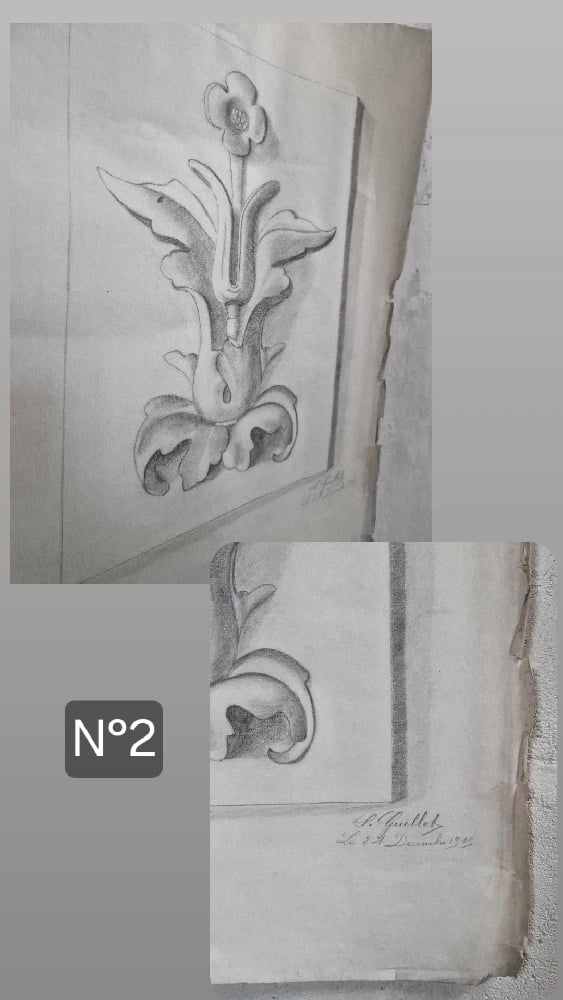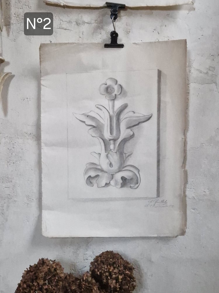 Magnifiques anciens et authentiques dessins au fusain de 1916 représentant des éléments d'architecture