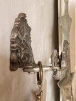 Deux anciens supports de tablettes art déco en métal ici détournés en patères. Le prix est pour les deux, elles sont identiques.