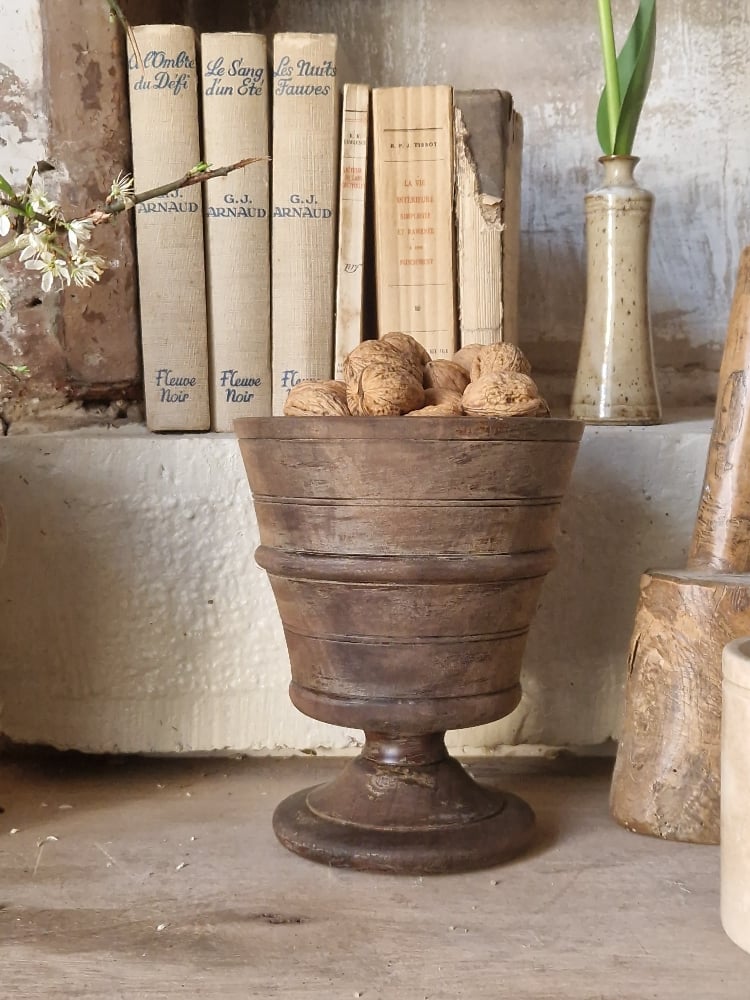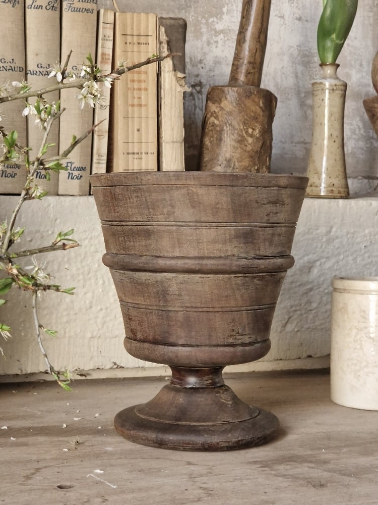 Charmant gros mortier en bois massif pouvant être détourné en pot ou en vase.