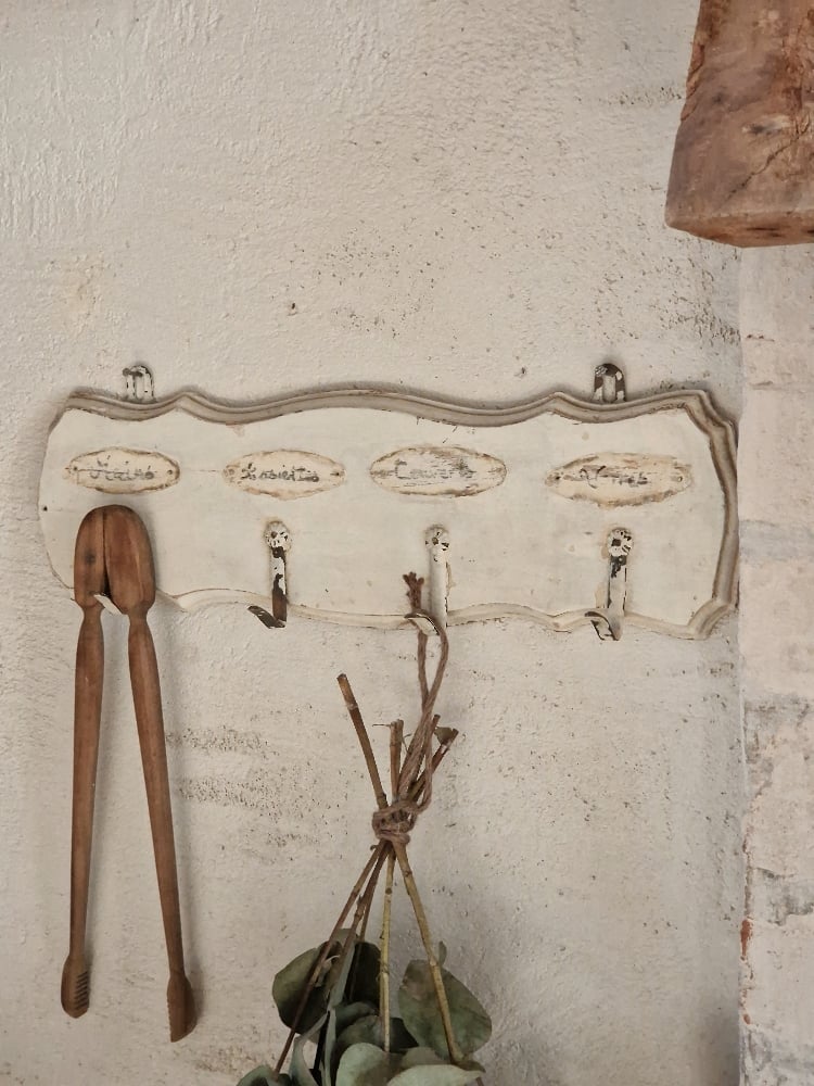 Porte torchons ancien dans sa patine d'origine blanc crème