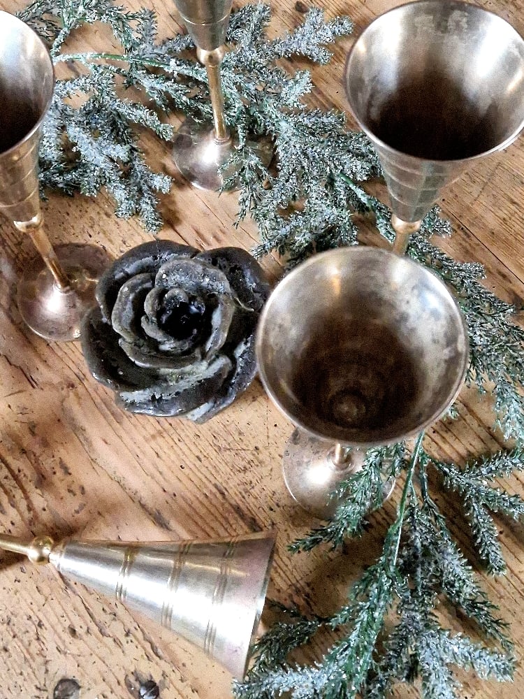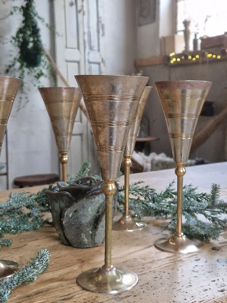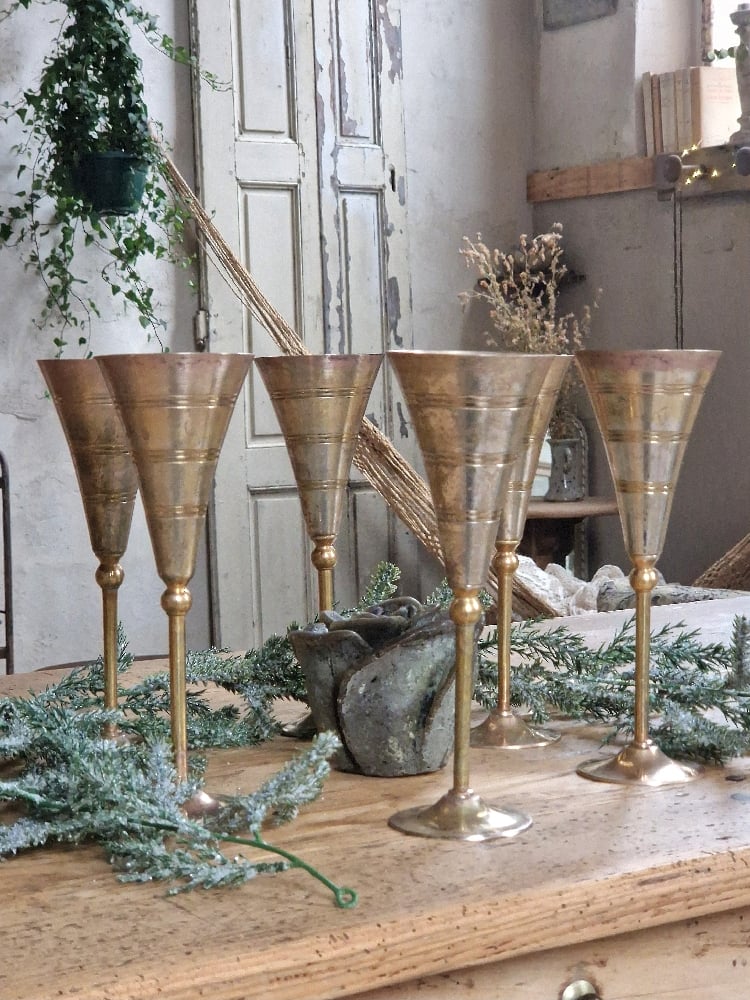 Lot de 6 coupes à champagne anciennes en laiton massif joliment travaillées dans une très belle patine.