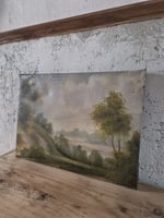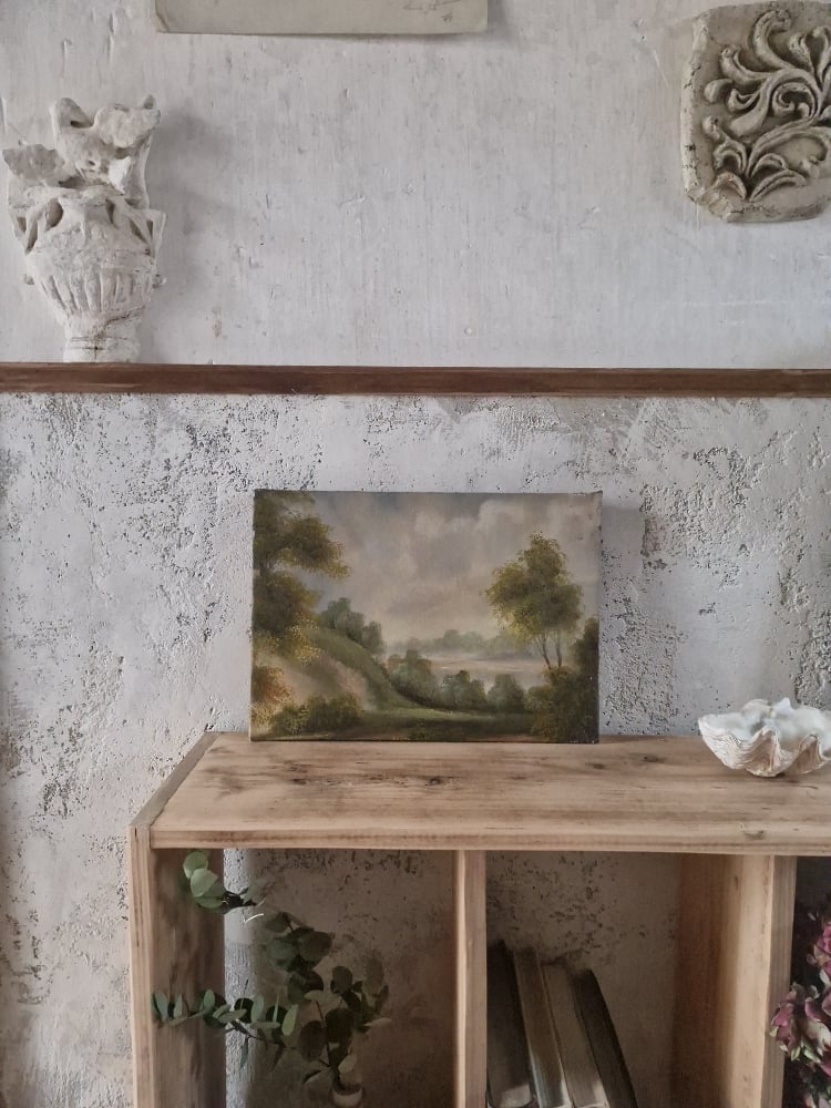 Magnifique ancienne petite peinture à l'huile sur toile montée sur châssis bois